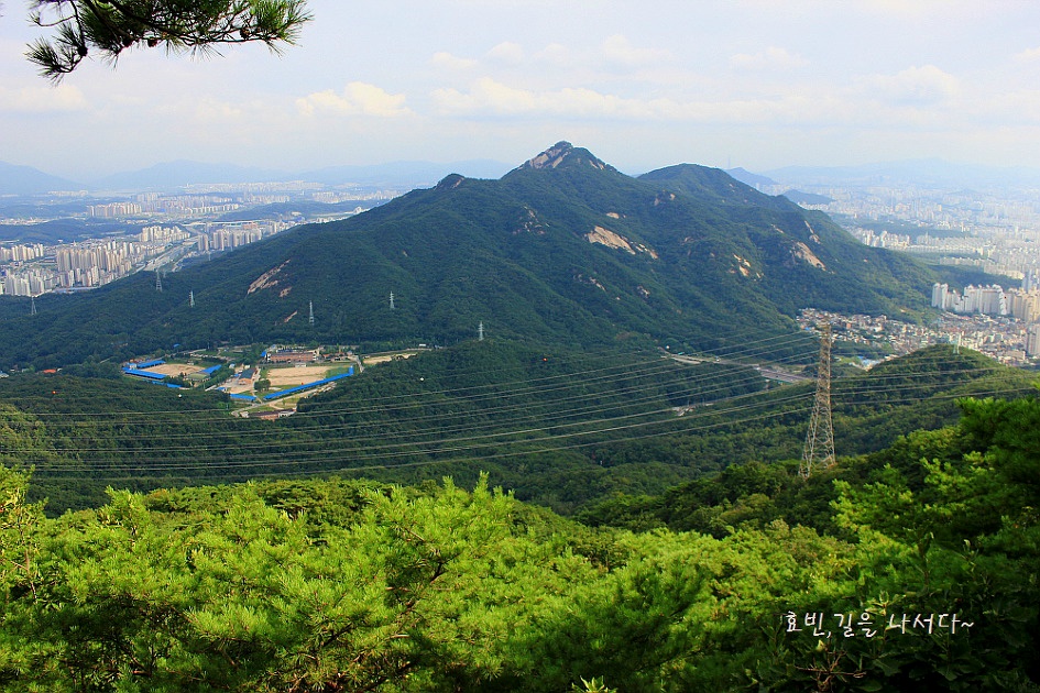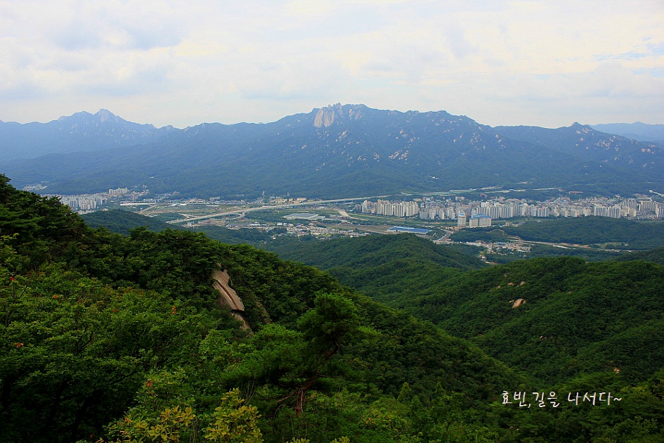 왼쪽 도정봉 동막봉 뒤로 보이는 나즈막한 산은 의정부의 천보산(336m)이겠고