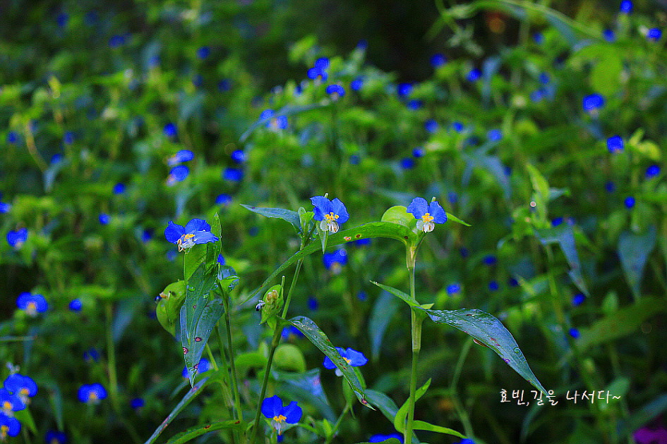 그저 흔한 잡초지만 진한 색감에 그냥 지나칠수가 없다. 어느 귀한 꽃들을 압도함이다. 닭의장풀이다.