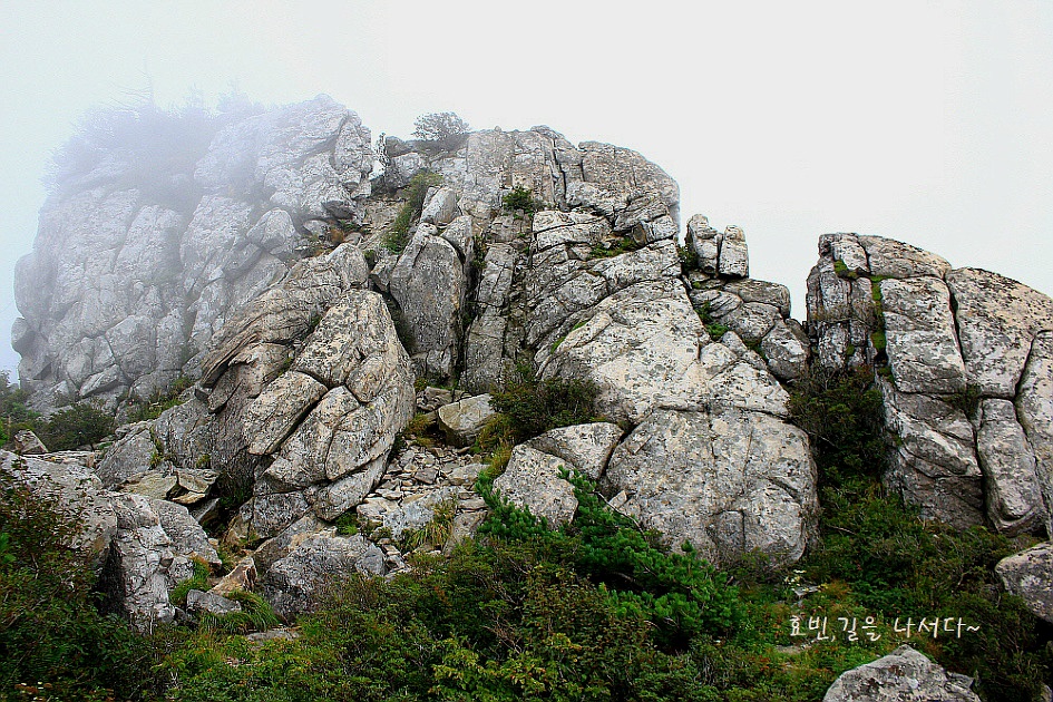 짧지도 그리 길지도 않은 산행이었지만 습한 안개와 거미줄과의 사투에 맥이 다 빠져 버렸다.