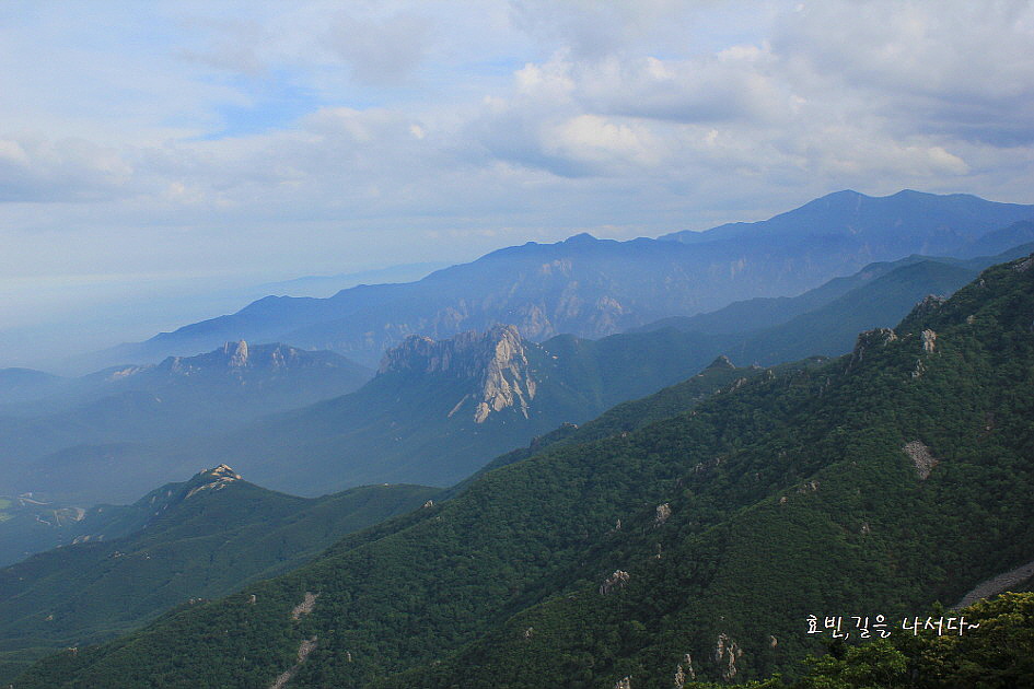 뒤로는 북설악 매봉과 칠절봉에서 우측은 향로봉으로 이어지는 능선이다.