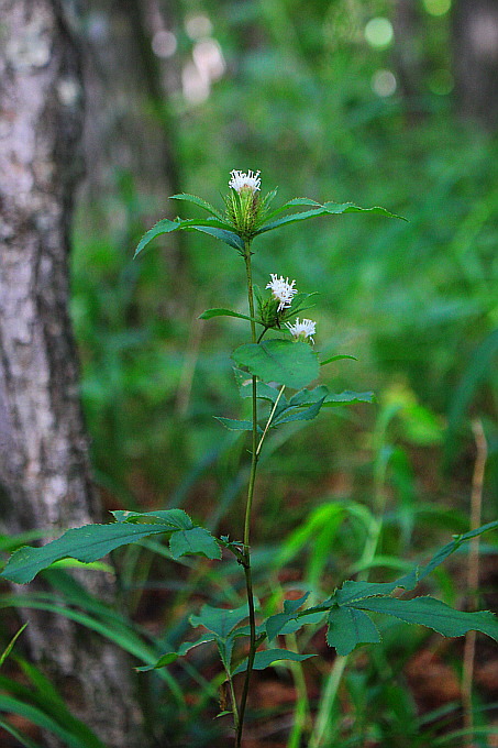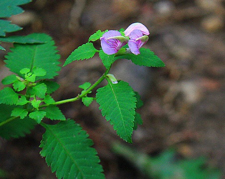 잎 끝이 뾰족한 오리방풀. 비슷한 산박하는 전체적으로 작고 잎 끝이 저리 뾰족 튀어나오지 않는다.