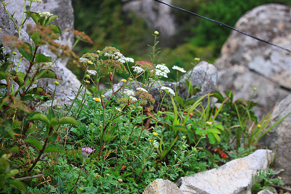 산구절초와 산오이풀이 함께하는 신선봉 바위지대.
