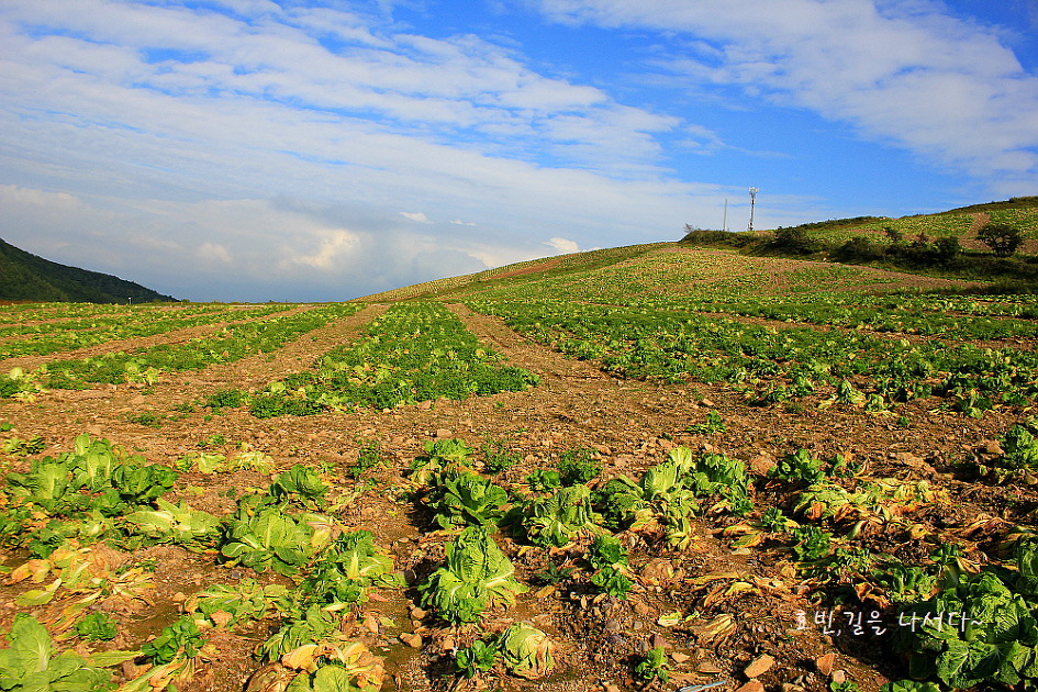 배추밭을 옆에 끼고 내려서는 길,