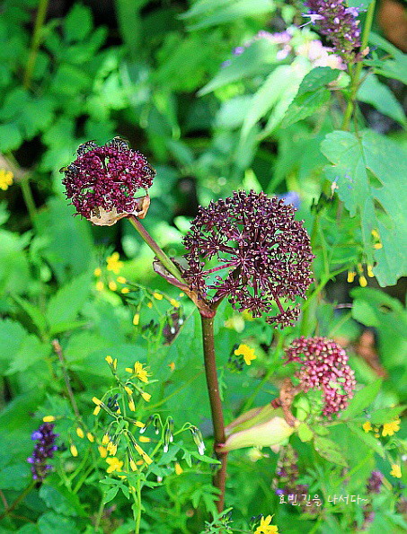아래는 참당귀와 노루삼 열매. 참당귀 주변엔 까치고들빼기와 배초향도 가득하다.