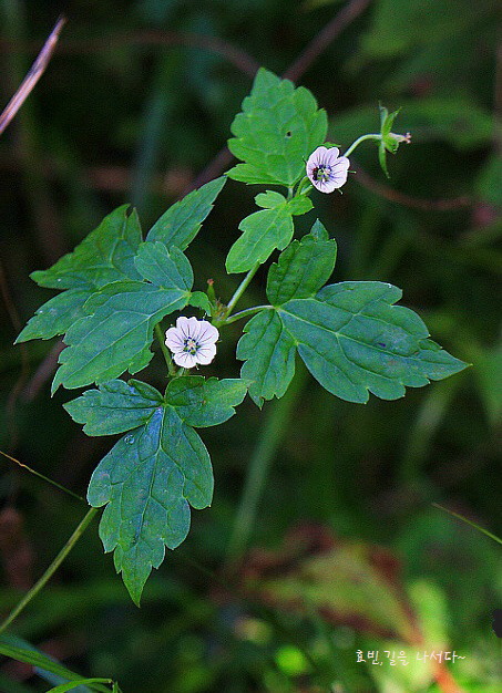 잎은 삼각상 원형이고 3개로 얕게 갈라지고 잎 양면에 잔털이 있는