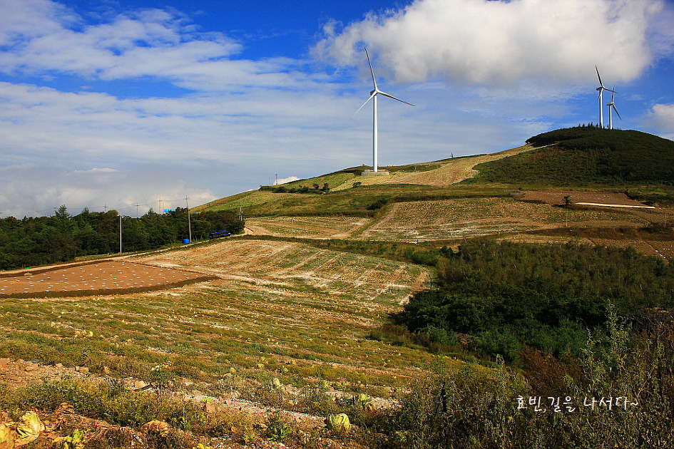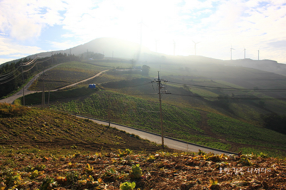 드디어 풍차가 있는 바람의 언덕 고랭지채소밭이 보이기 시작한다.