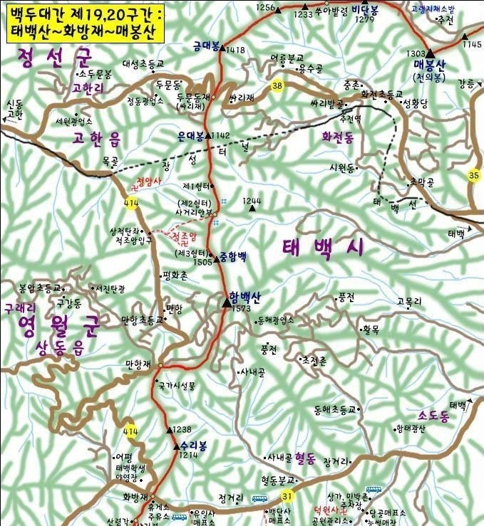 산행코스 : 만항재~함백산~두문동재~매봉산~삼수령(약 17km)