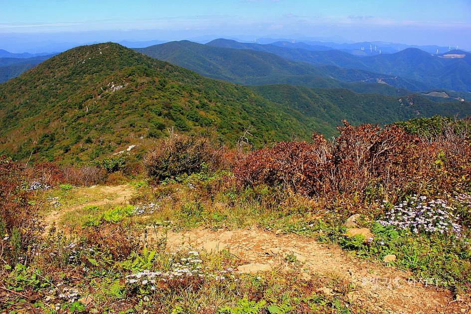 가장 편안한 가을꽃 개쑥부쟁이가 정상으로 가는 길을 인도한다.