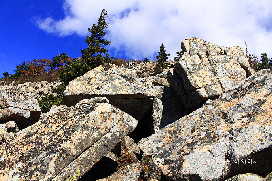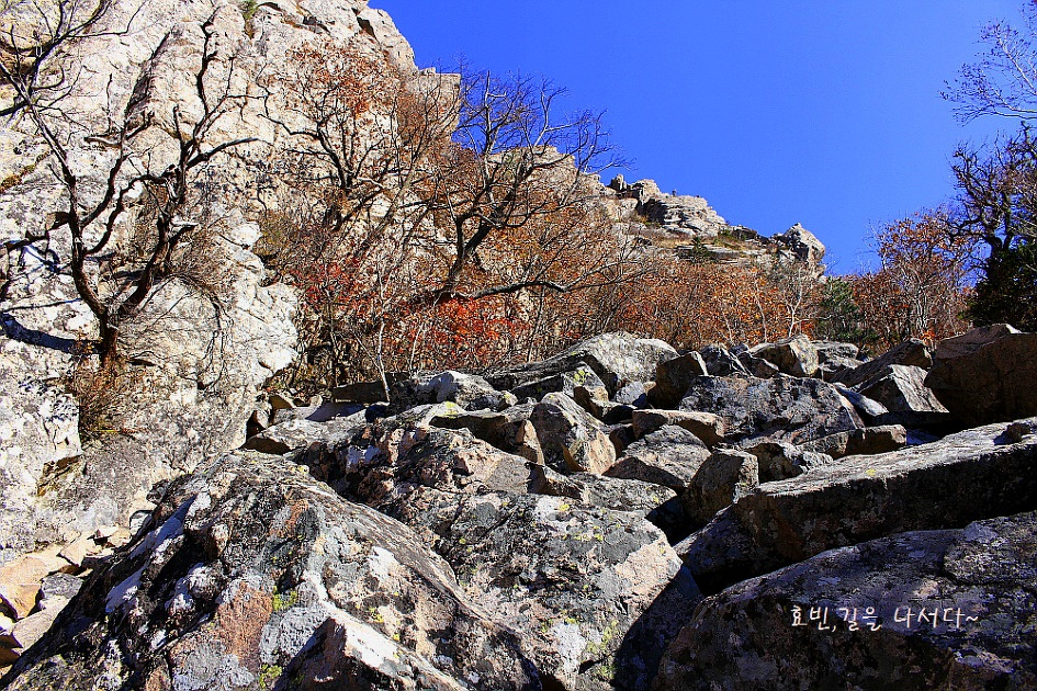 맘에 드는 너덜 하나씩 골라 보세요. 사뿐사뿐 밟아 내려가면 그게 최적의 길이 될거랍니다.