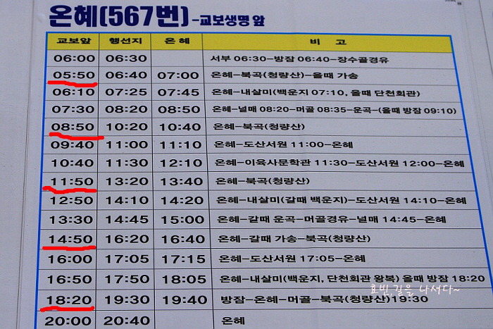 다른 곳의 시간표들은 다 붙어 있는데 유독 온내란 지명만 보이지 않아