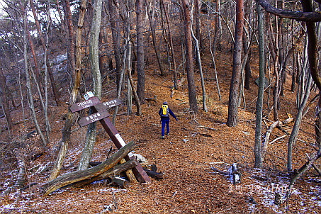 용동마을에서 0.5km를 올라오면 첫 이정목을 만나고