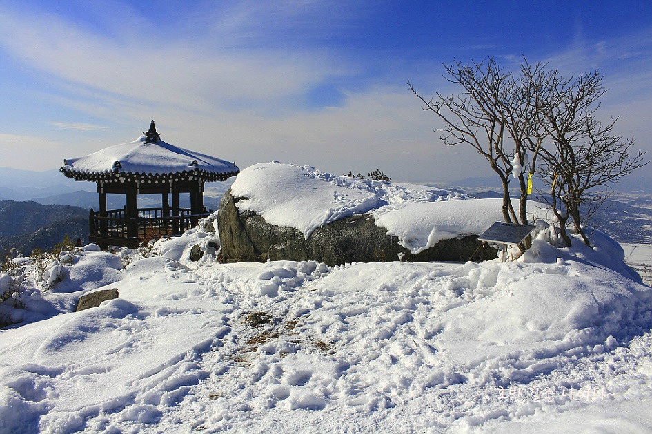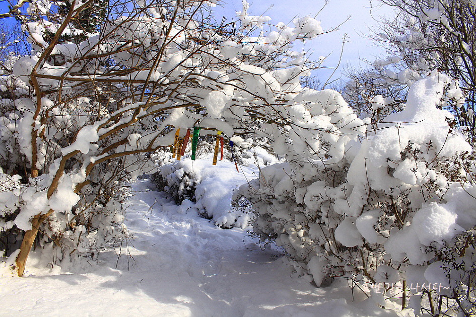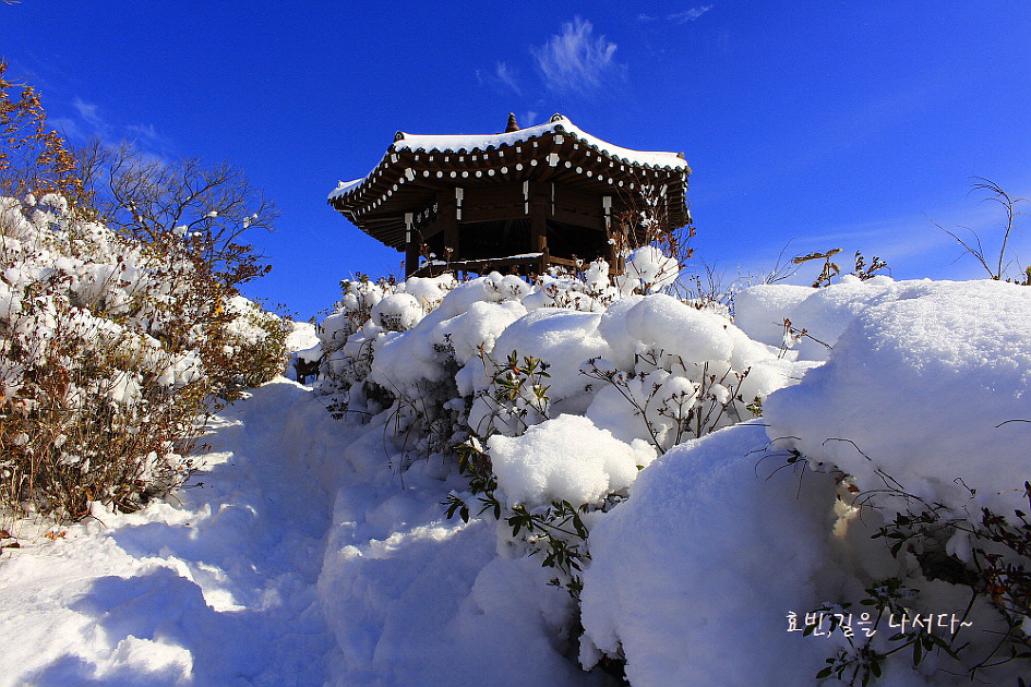 목화솜 눈송이를 따라 장암정으로 오른다.