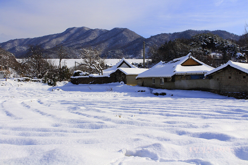 지붕위에 얹힌 눈들은 지금은 사라지고 없는 연말연시 연하장이나