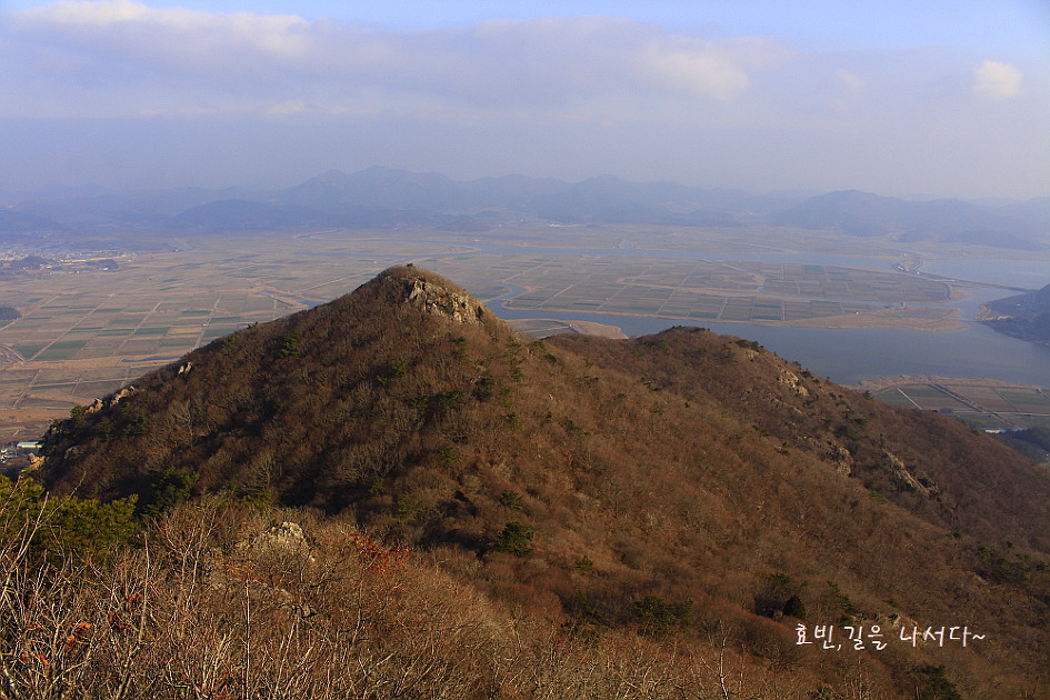 좌측 지나온 향로봉과 뒤로는 해창만 들판이다.
