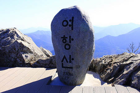 길게 계단이 설치된 여항산은 하나로 된 커다란 암봉이다.