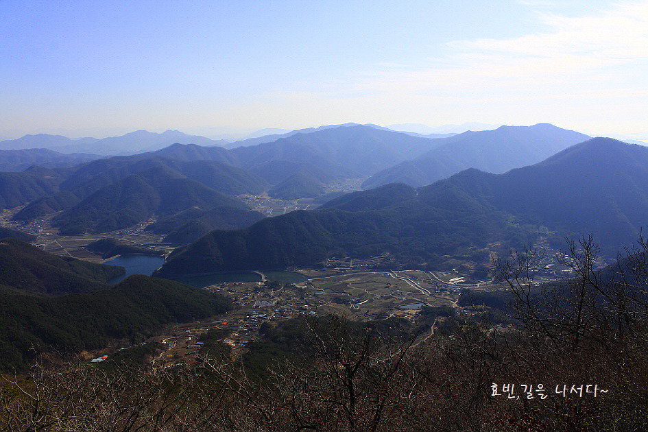 좌측으로 나즈막한 두 봉우리가 백화산(국사봉)이 맞다면 분명 우측 뒤로 있는 봉우리는 지리산이 맞겠다.