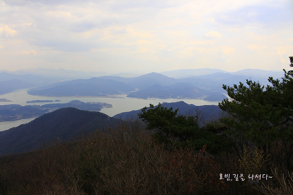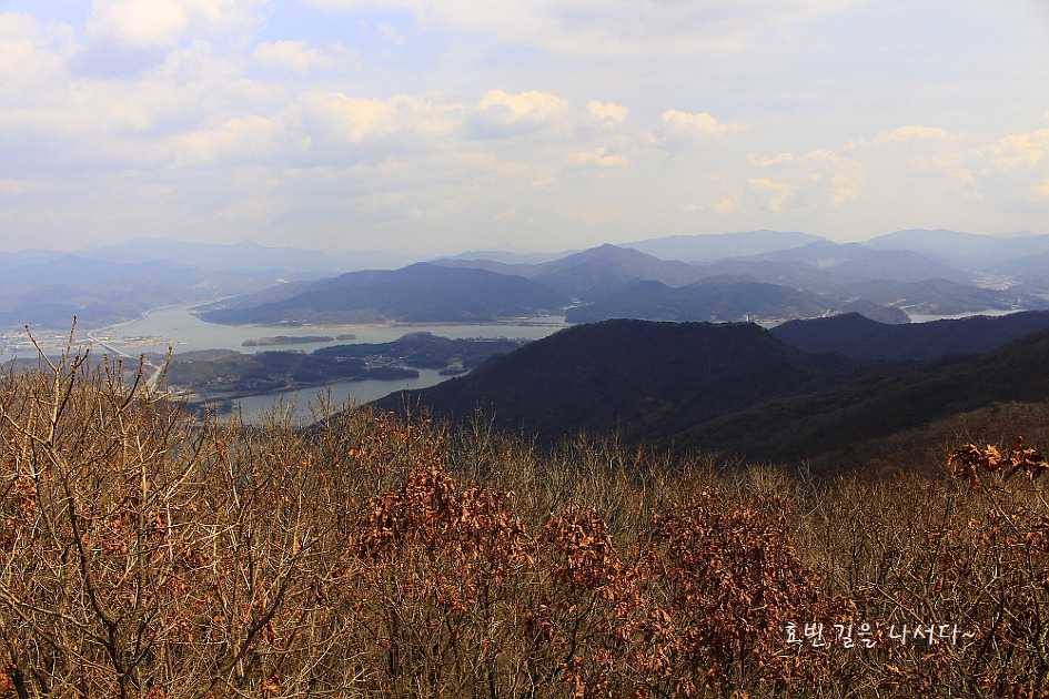기상관측소가 생긴 예봉산과 예빈산이 하나의 능선처럼 강 위를 흐른다.