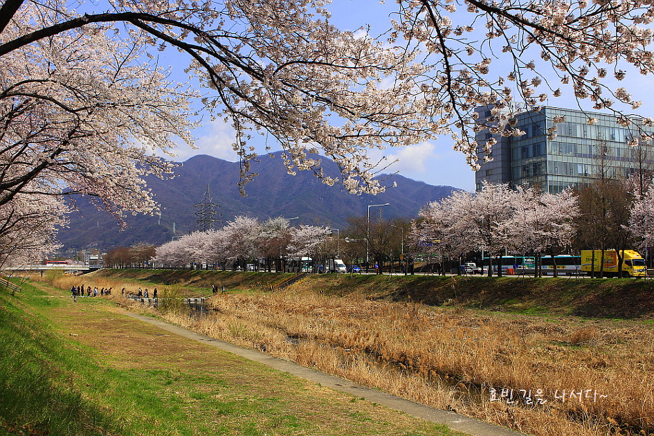 검단산 들머리인 애니메이션고 앞 산곡천에 벚꽃이 만개를 하였다.