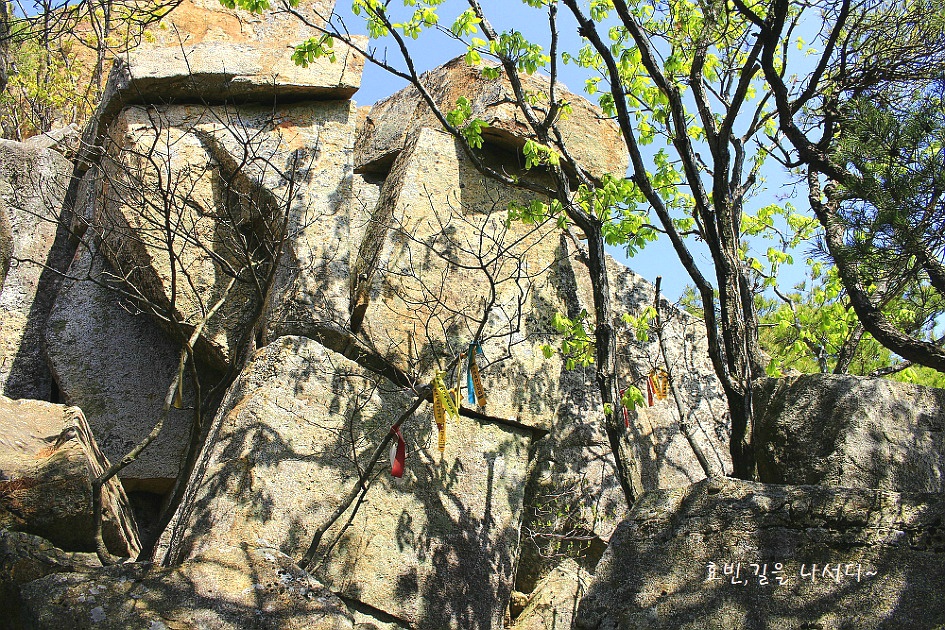 커다란 바위와 그 속에 피어난 진달래가 기분 좋은 엔돌핀을 전해준다.