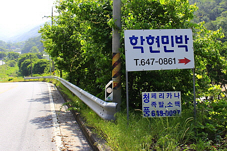 하학현정류장 가기전에 조가리봉 초입인 학현민박이 보여 기사님께 부탁드리니 내려주신다.