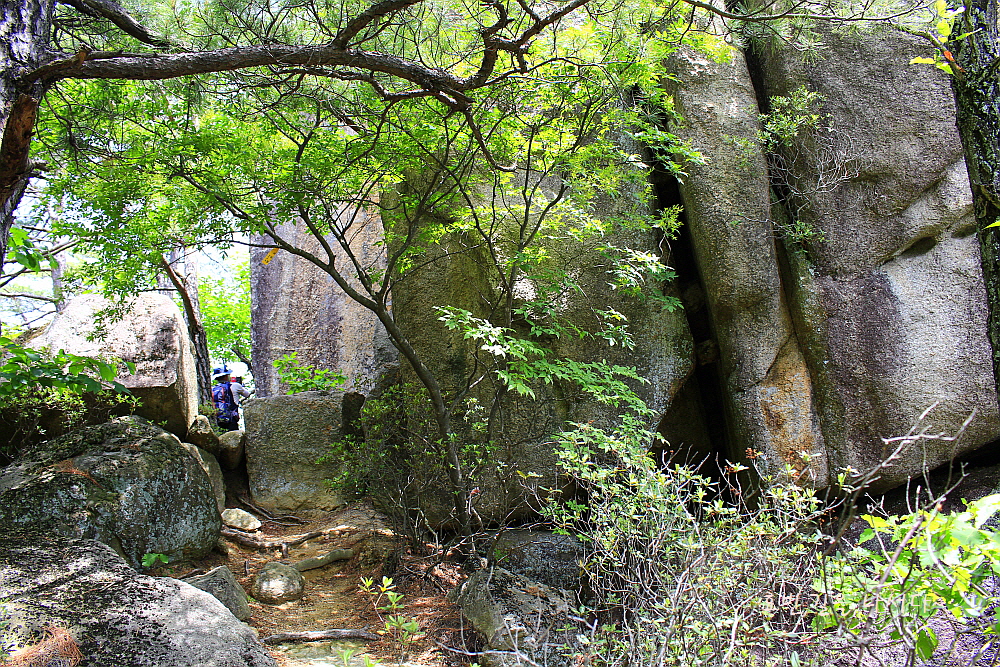 역시 바위 좋고 소나무 좋은 충북 산지답게 조금 올라서자 커다란 바위지대와 소나무가 이어진다.