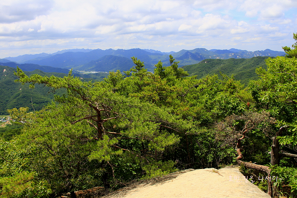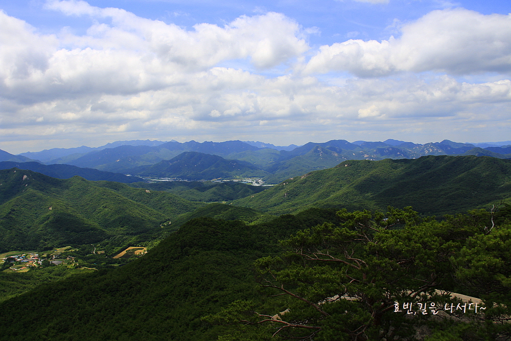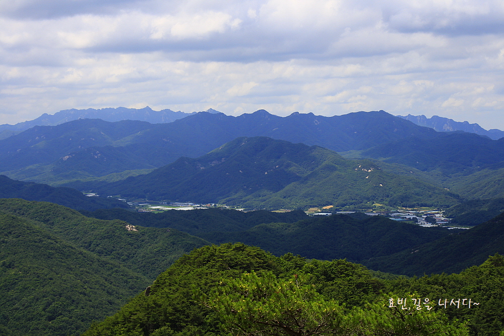 맨 우측으로는 계곡 좋기로 많이 알려진 가령산 낙영산 도명산의 시작인 가령산도 보이기 시작한다.