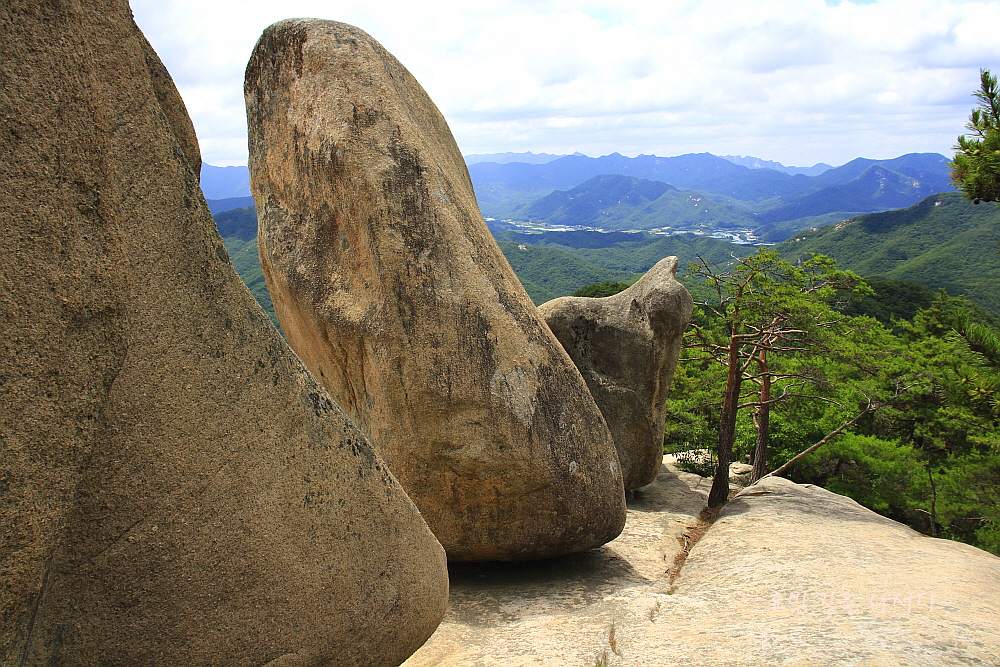 삼형제바위가 가까워지니 큰 바위들이 저마다의 표정으로 한자리씩 차지하고 있다.