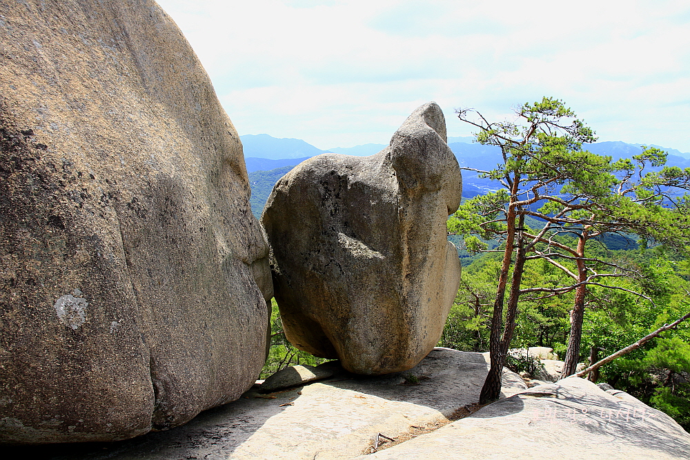 어미 바위가 입술을 내밀어 아기 엉덩이에 뽀뽀하는 모습처럼도 보였다.▲