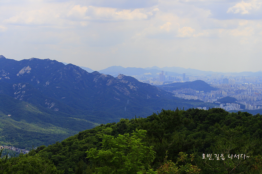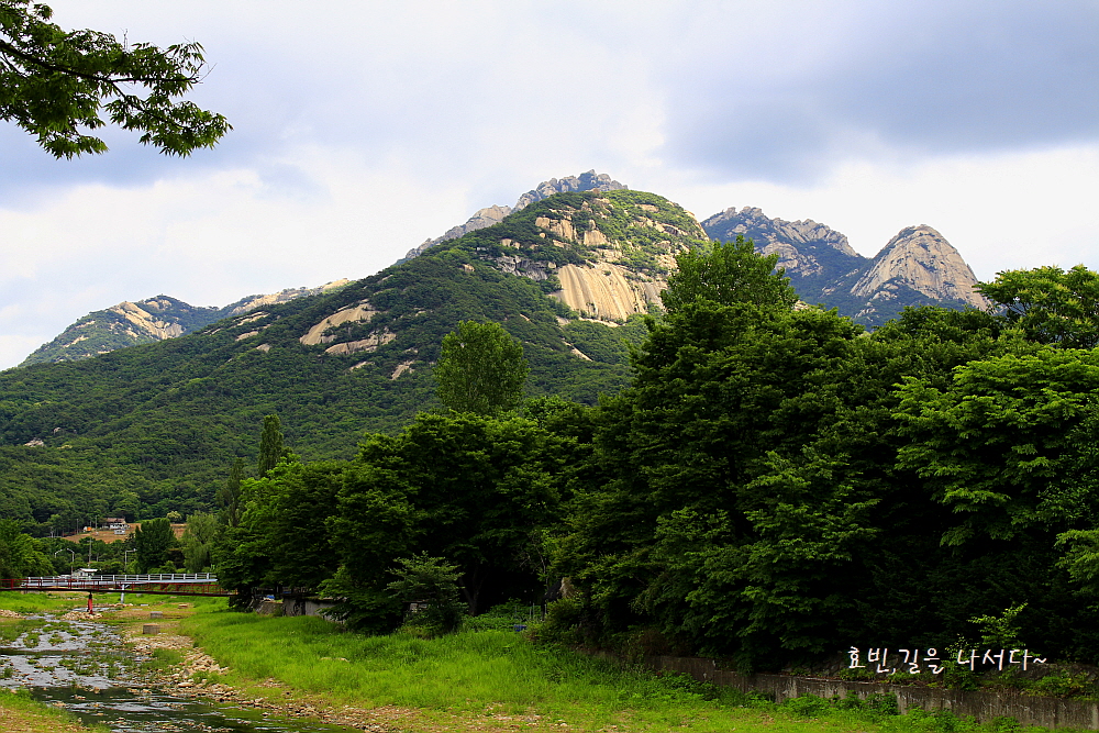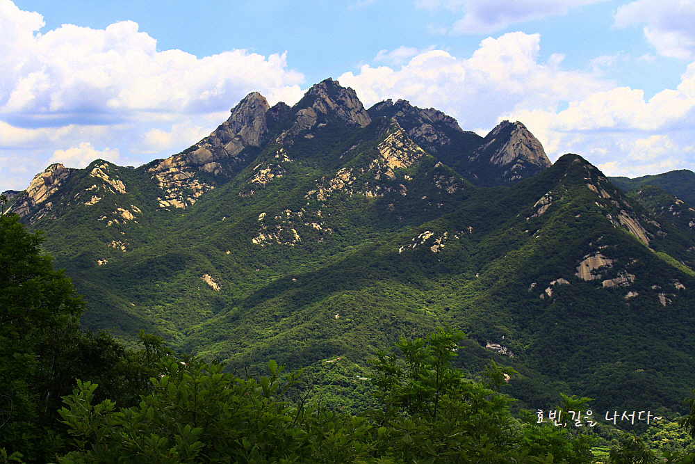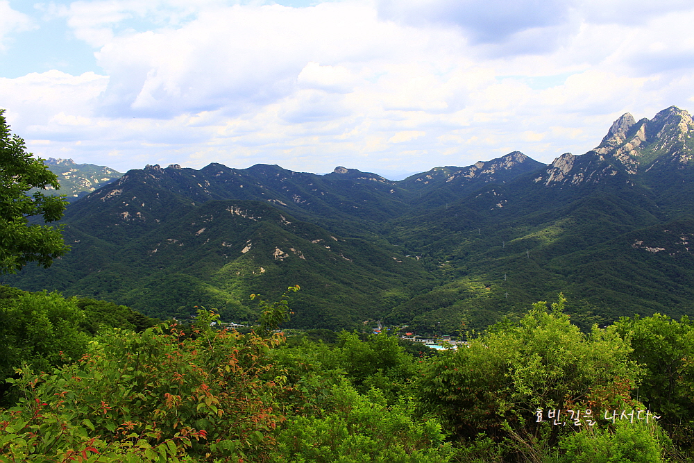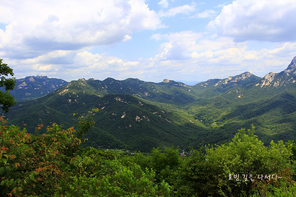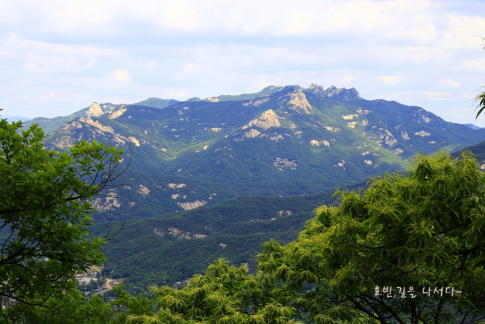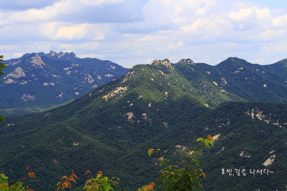 나지막한 이곳에선 원효봉이 가장 돋보이지만 높이 올라가다 보면 백운대 인수봉이 솟아 보일 것이다.