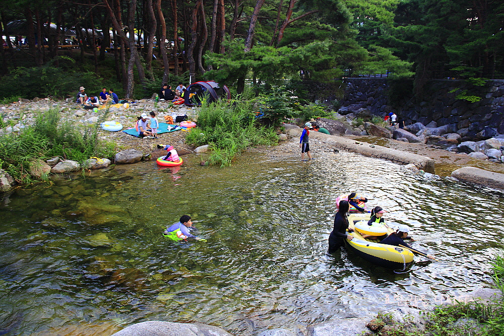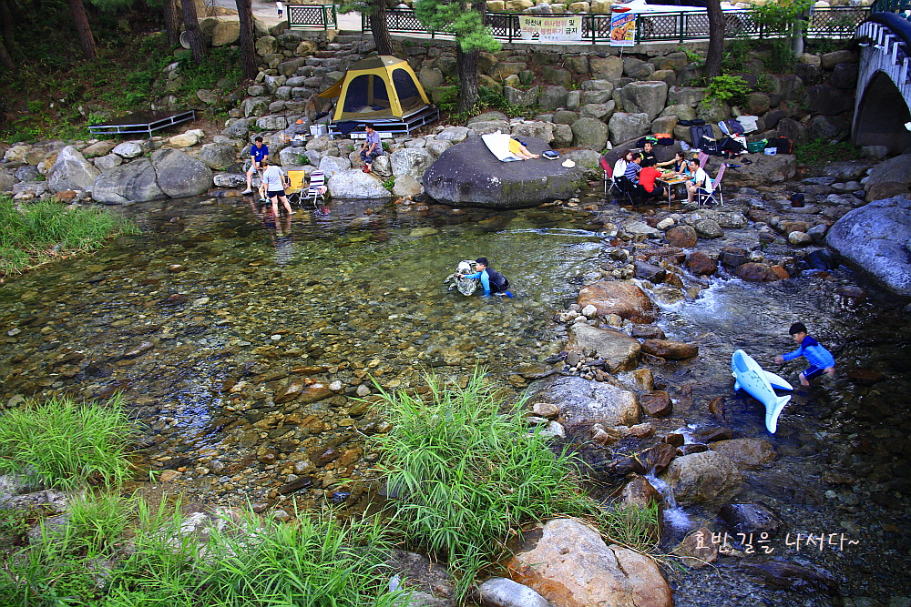오후 6시가 다 되었지만 그 아래 계곡엔 여전히 사람들 물놀이가 한창이다.