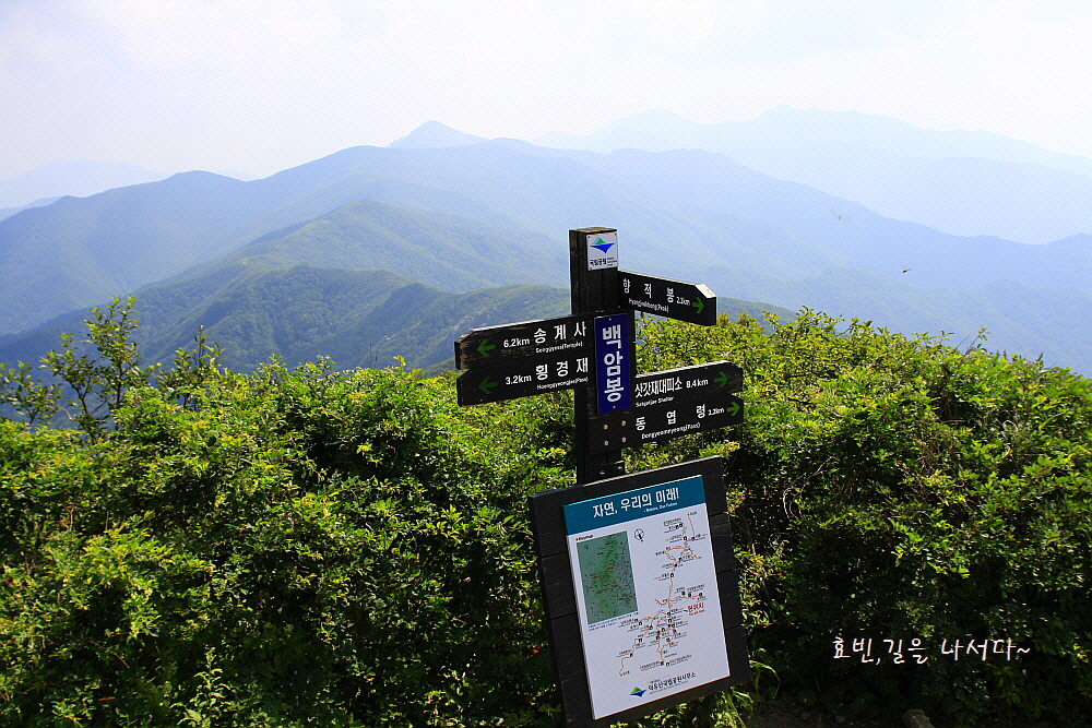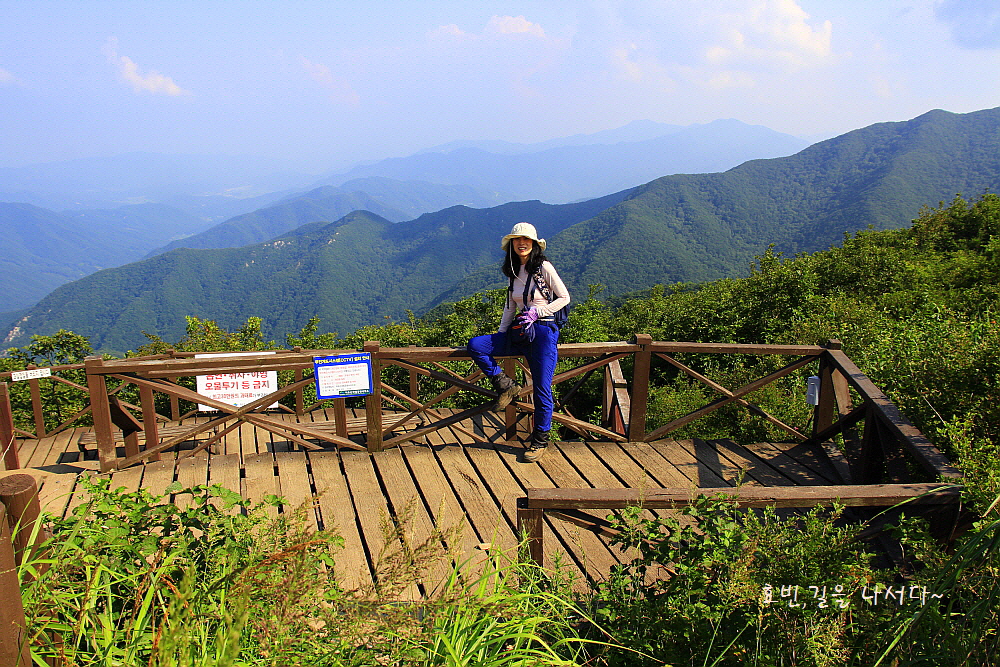 장마철 날은 꿉꿉한데다 뜨거워진 날, 아스팔트 따라 빼재에 올라서니 벌써부터 숨이 차오르고 기진맥진이다.