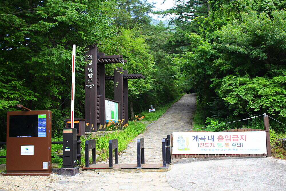 안성탐방센터로 하산 시작한다. 칠연계곡이 있는 안성탐방센터까지 4.2km는 더 내려가야 한다.