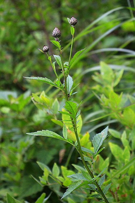 잎줄기에 날개가 있고, 잎이 줄기를 감싸는 이것이 두메고들빼기다.↑
