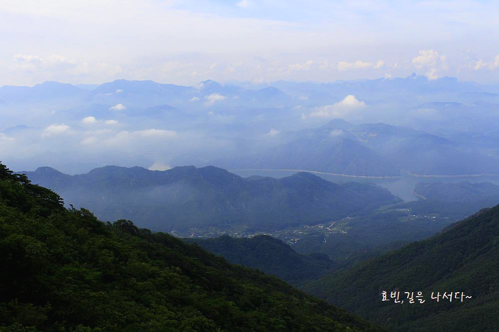 가운데서 좌측 맨 뒷줄, 어렴풋 영월과 평창 횡성에 걸쳐 있는 백덕산도 보인다.