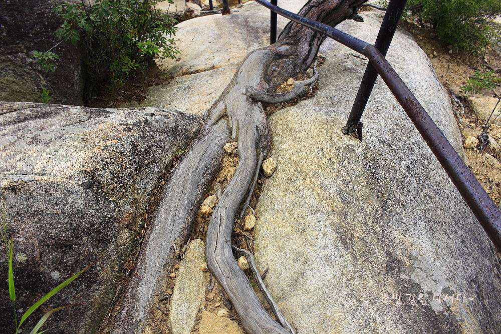 난간 옆으로는 멋드러진 소나무가 압권이고, 길이 되어버린 뿌리는 밟히고 문드러져도
