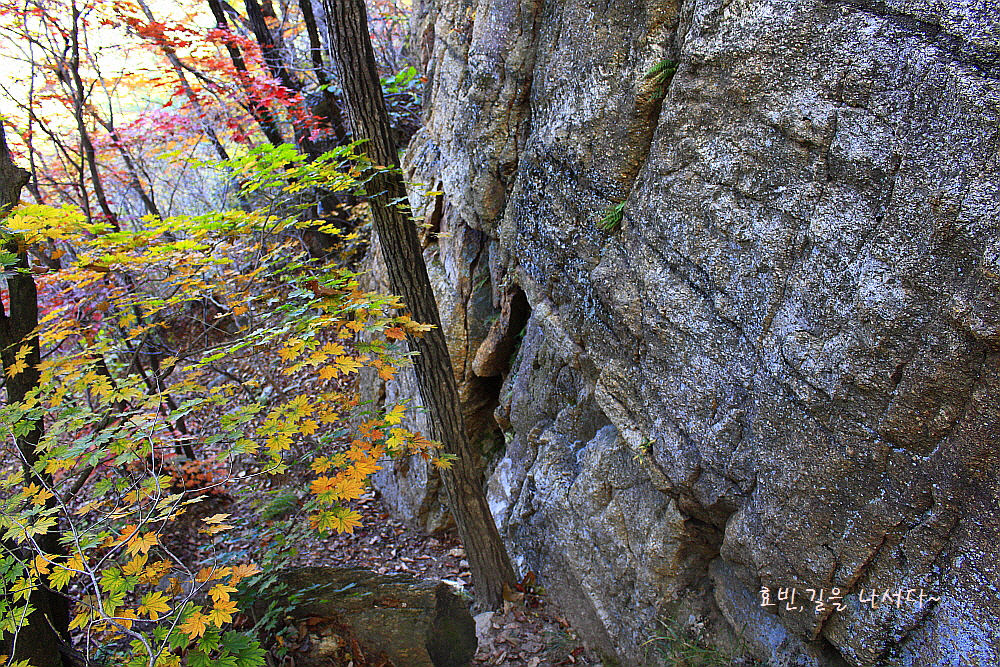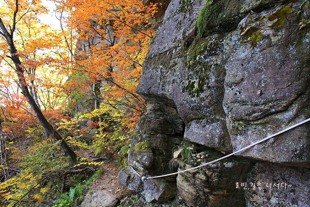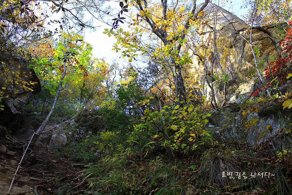 처음부터 급경사 깔딱을 올라야 하지만, 이미 연노랗게 물들고 있는 나무와 낙엽을 보니
