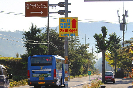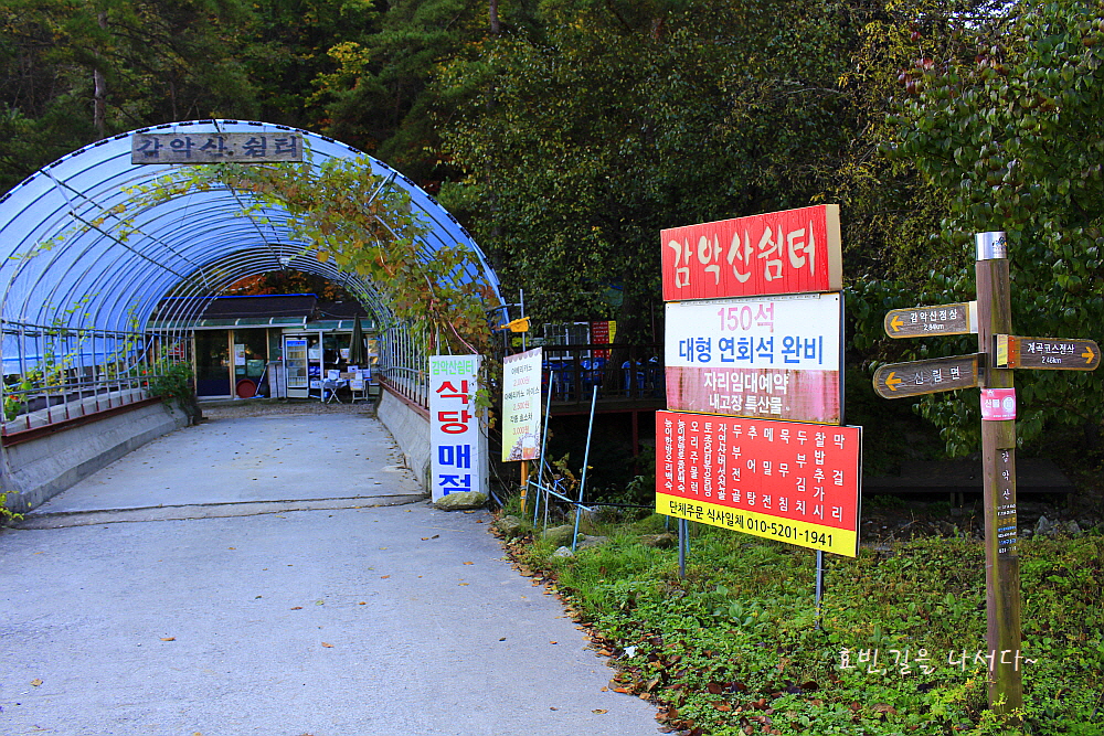 창촌정류장에서 내려 감악산 등산로와 감악산쉼터 이정표를 따라 들어간다.