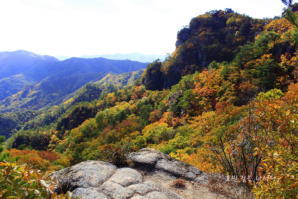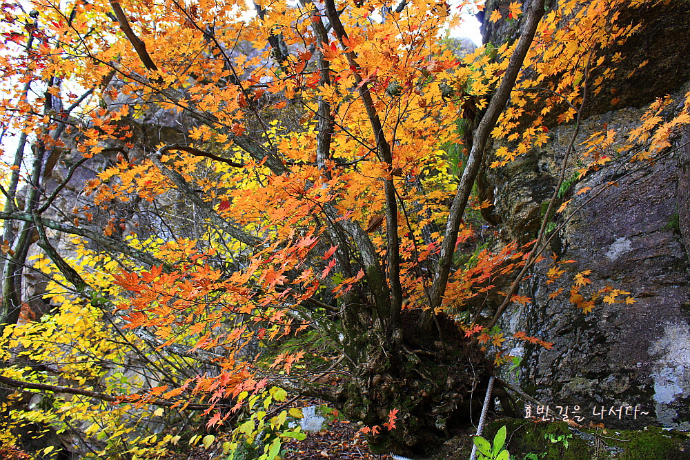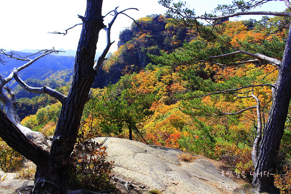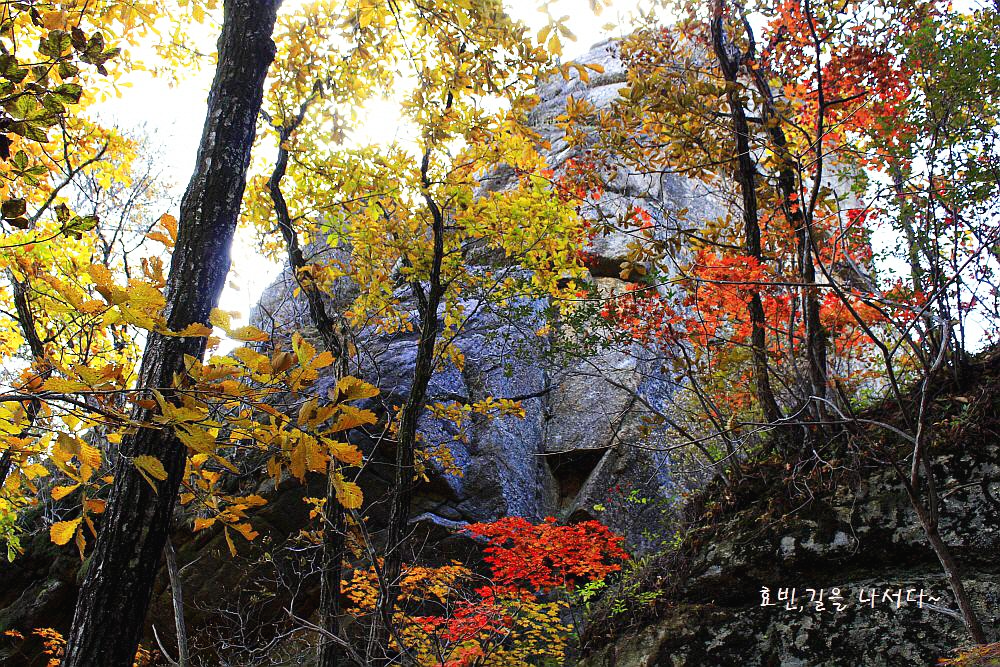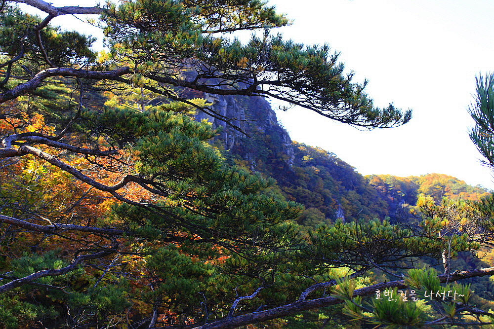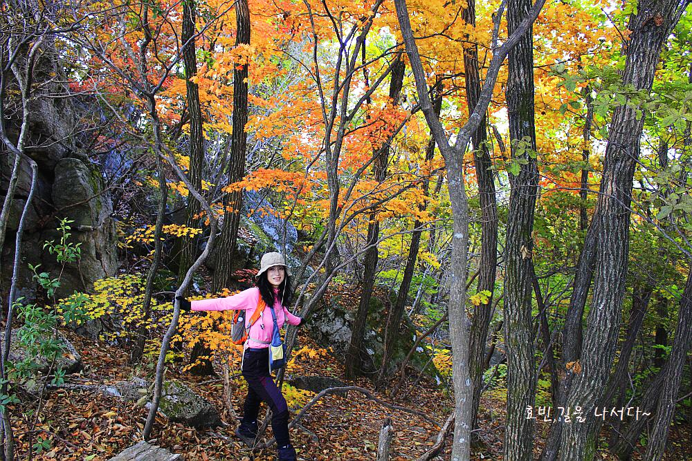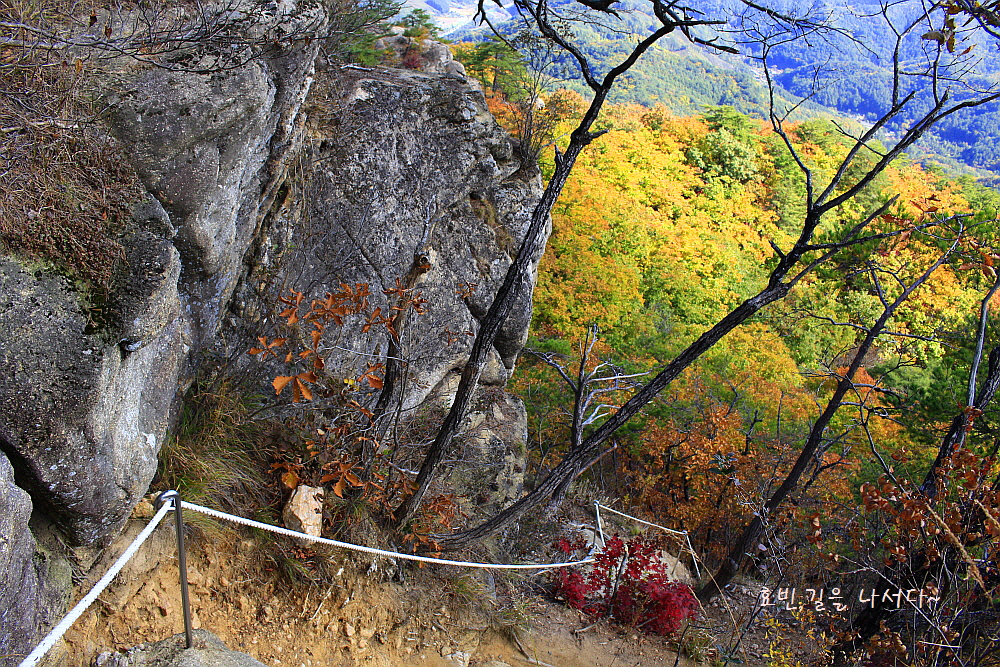 조망도 좋고, 기암들속에 막 피어난 단풍의 어우러짐에 푹 빠져 걸었음이다.