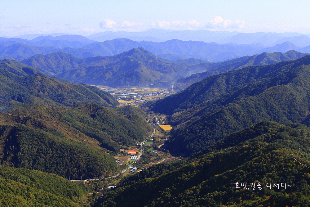 뒤로는 소백산이 아련히 금줄을 이어가니