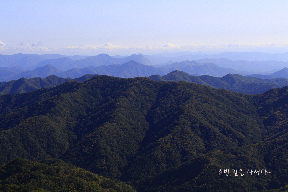 그리고 맨 뒤로 가리왕산과 청옥산 라인이 두둥실 너울을 그렸다. 더 올라가서 살펴보자.