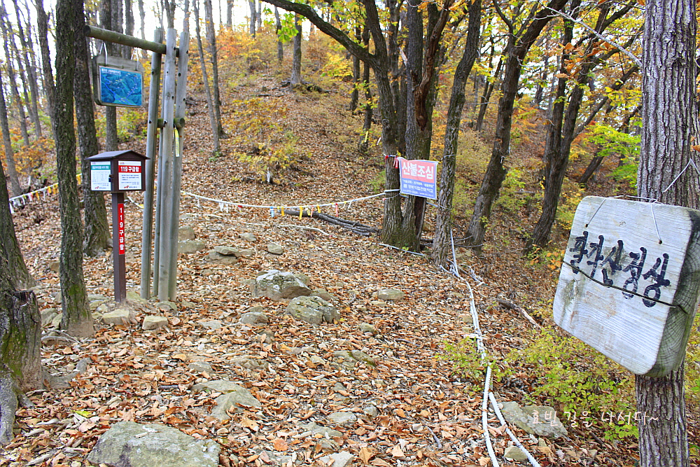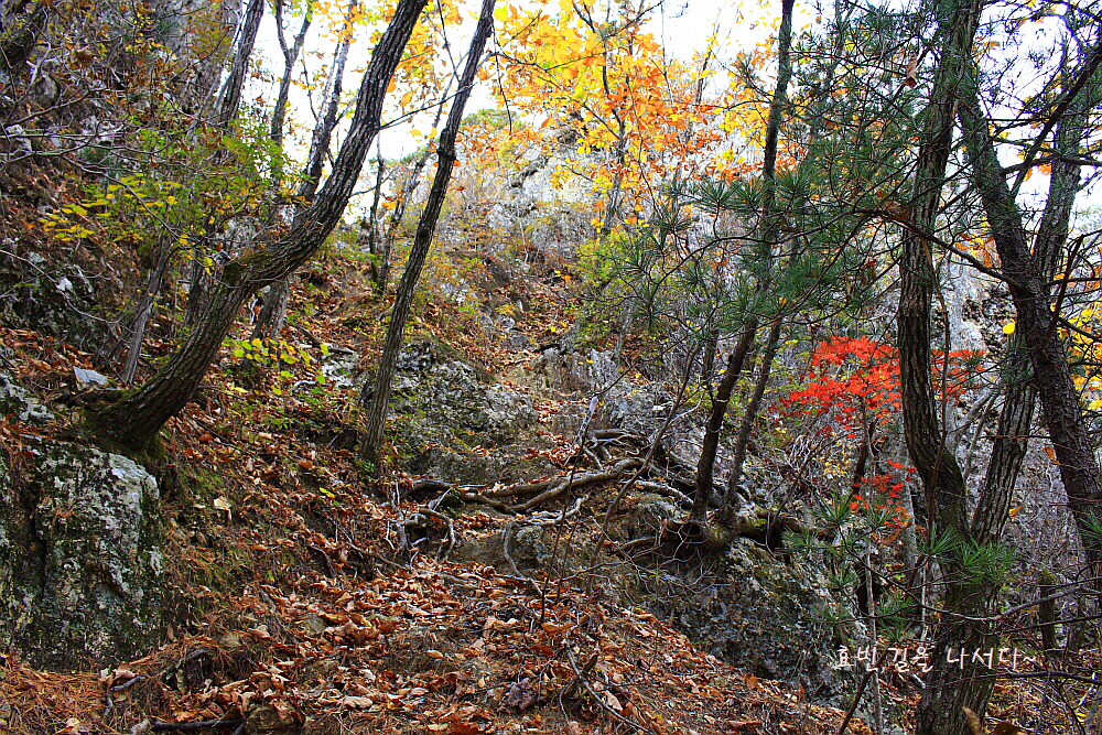 친절하게 써 있는 하산로를 따라 내려선다. 낙엽길이며 잡목이라 부르는 모든 나무들도