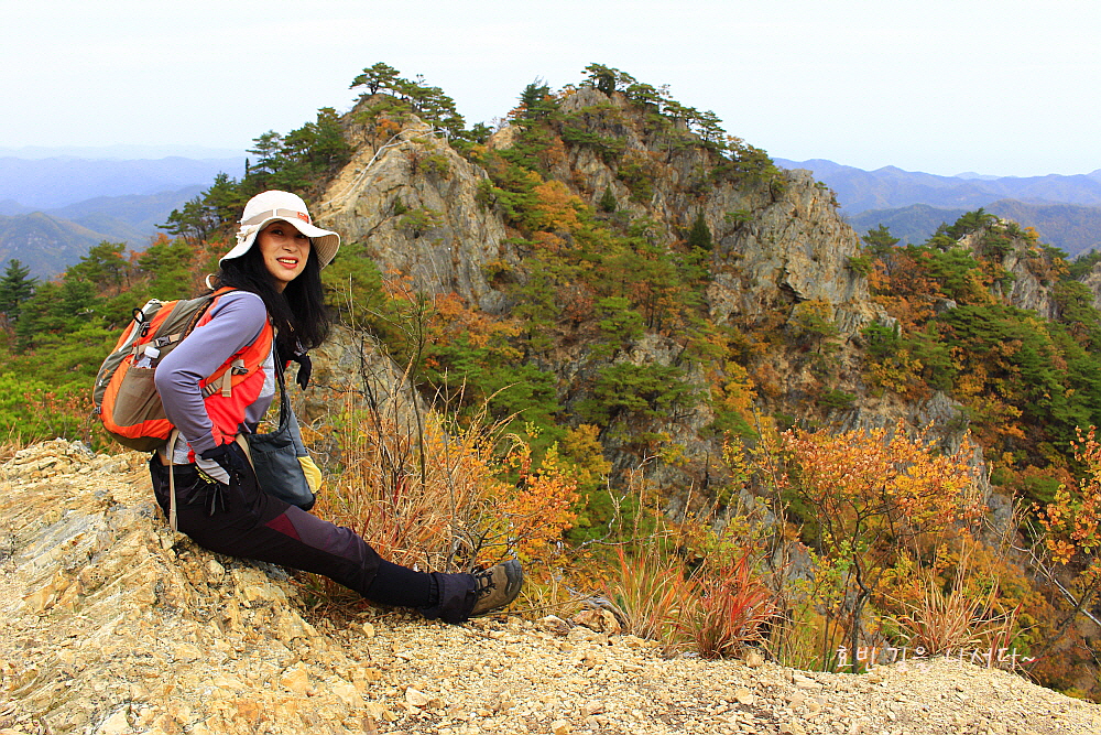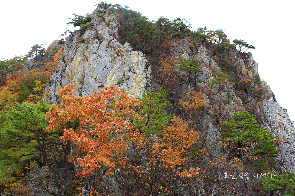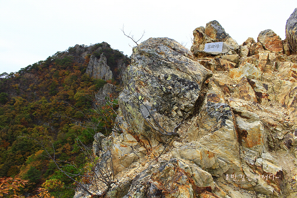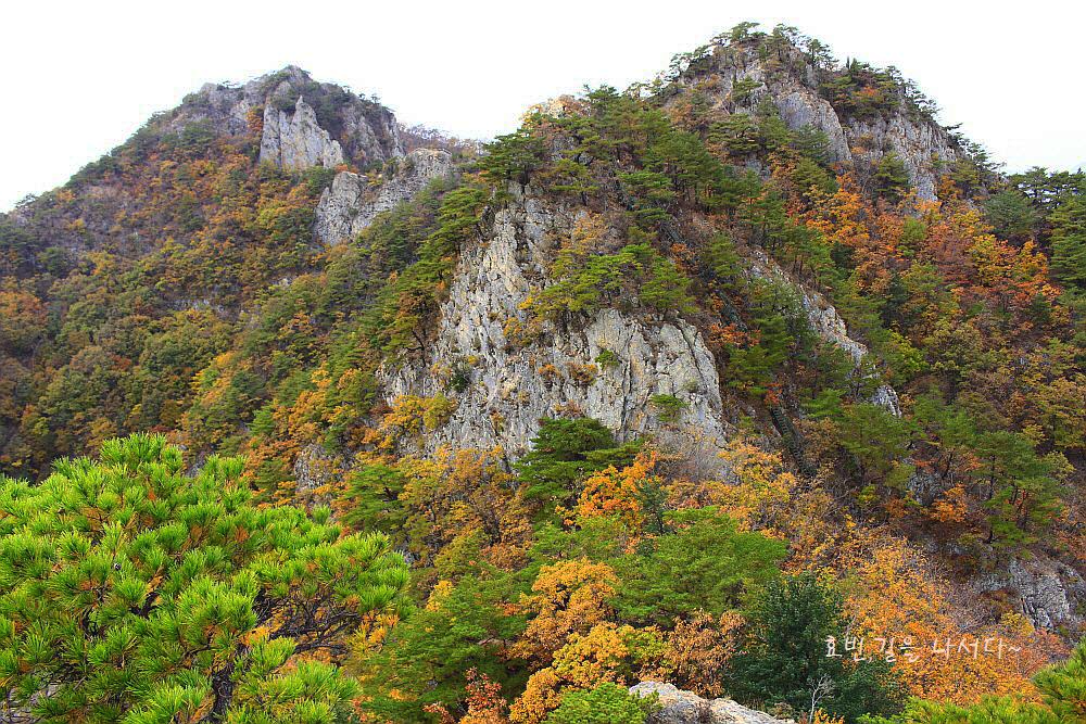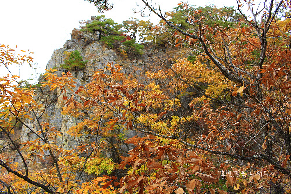 병풍처럼 뒤를 두른 암봉들과 단풍의 어우러짐은 자체로 볼거리가 되었다.