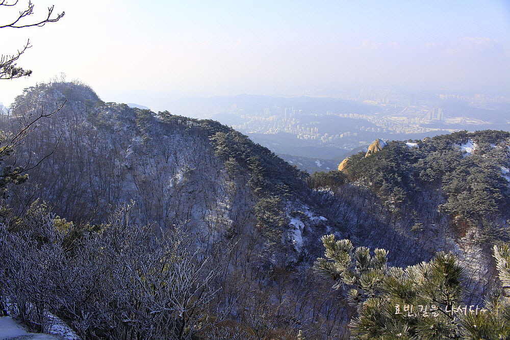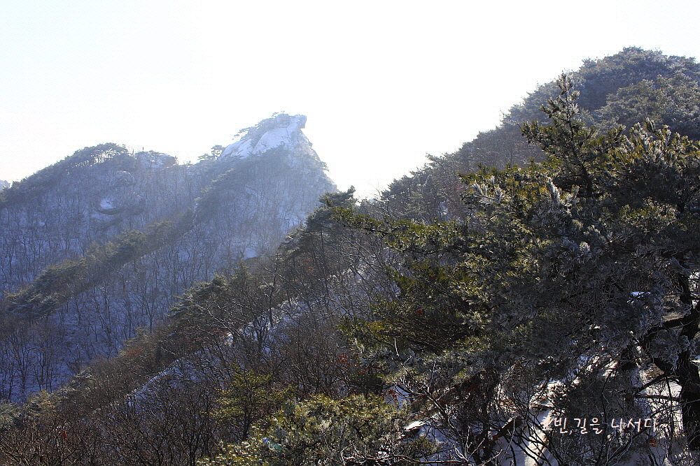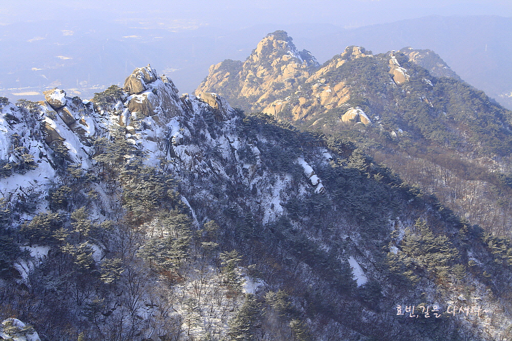이런날은 멀리까지 보려 애쓰지 않으니 피로하지 않아서 좋긴 하다. 우측 뒤 튀어나온 봉우리는 칼바위능선이다.