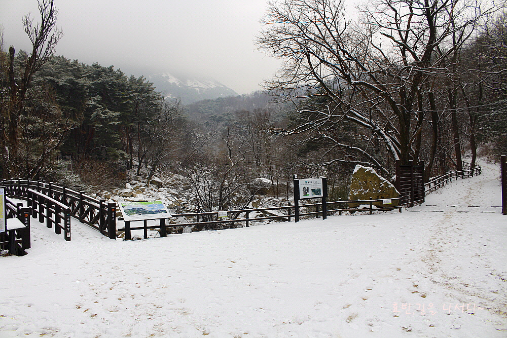 가늘게 눈발은 흩날리고 산행을 시작하기엔 좀 늦은 시간이라 그런지