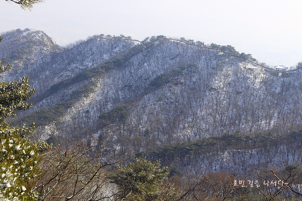 우측 동장대부터 용암문을 지나 만경대 백운대로 향하는 길이 연한 수채화처럼 은은하기만 하다.