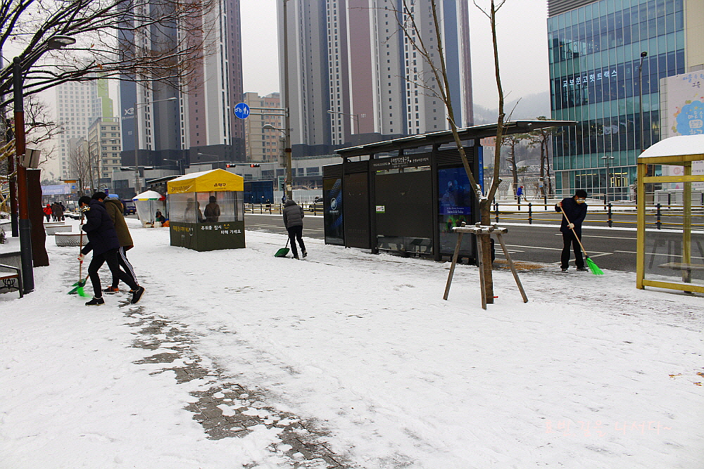 구파발역 2번출구로 나오니 공무원들인지 공익근무자들인지 여튼 여기저기 눈을 쓰는 사람들이 보인다.