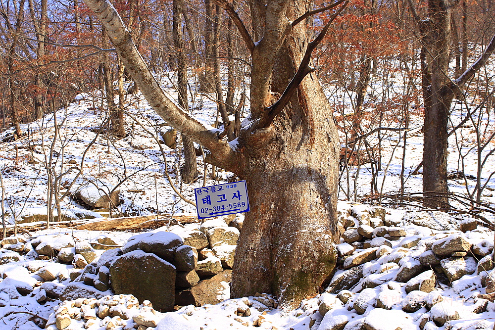 태고사 앞길을 지난다.태고사 하면 사찰보다는 저 나무에 걸린 안내판이 먼저 떠오르게 된다.