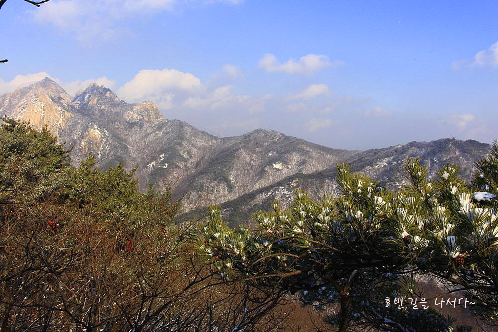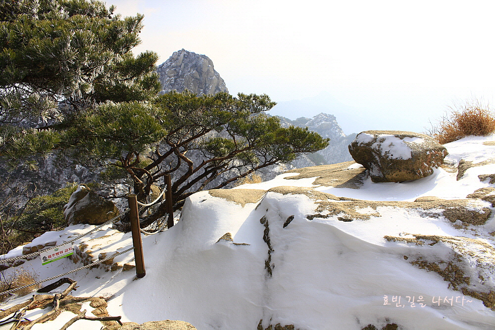 초입엔 언제나처럼 이 길을 지키는 의상능선의 의상봉도 오늘은 눈구름떼에 휘말려 새로운 운치로 맞아준다.