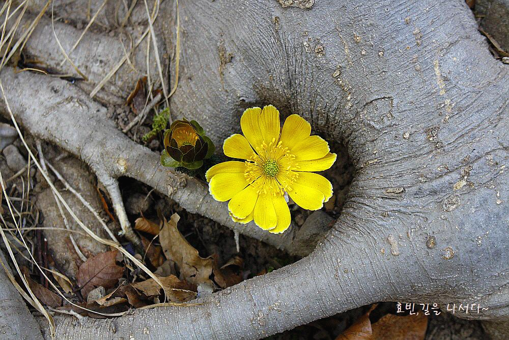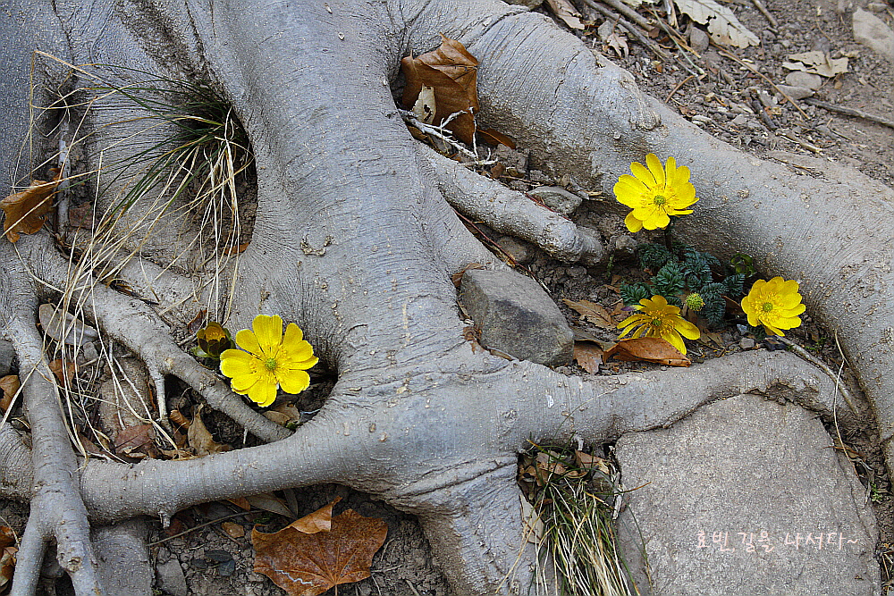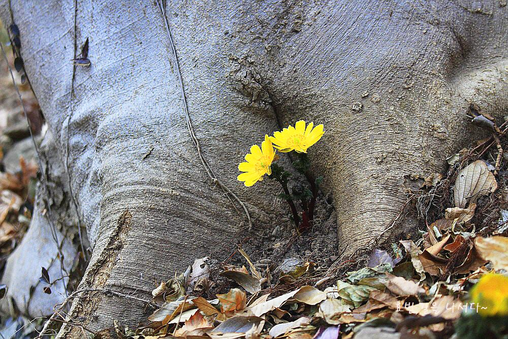 나무가 주인공인지 복수초가 주인공인지 어쨌든 둘 다 뷰티풀이어라.