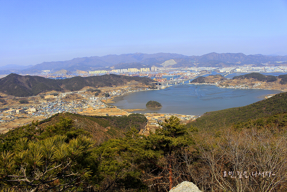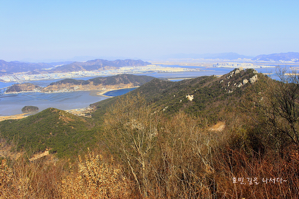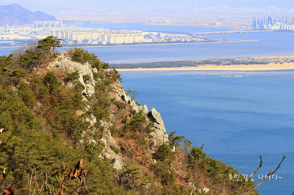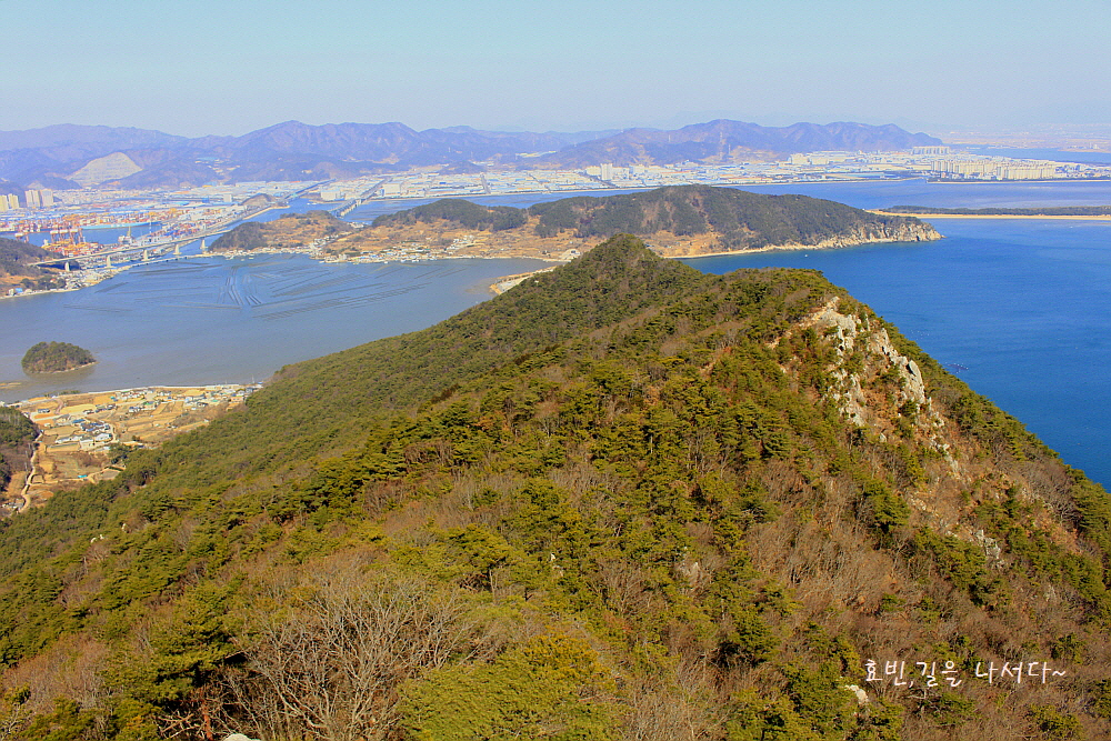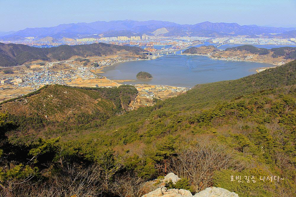 좌측 뒤로 있는 산이 진해 굴암산, 그 우측으로 부산 강서구의 보배산과 봉화산으로 이어진다.